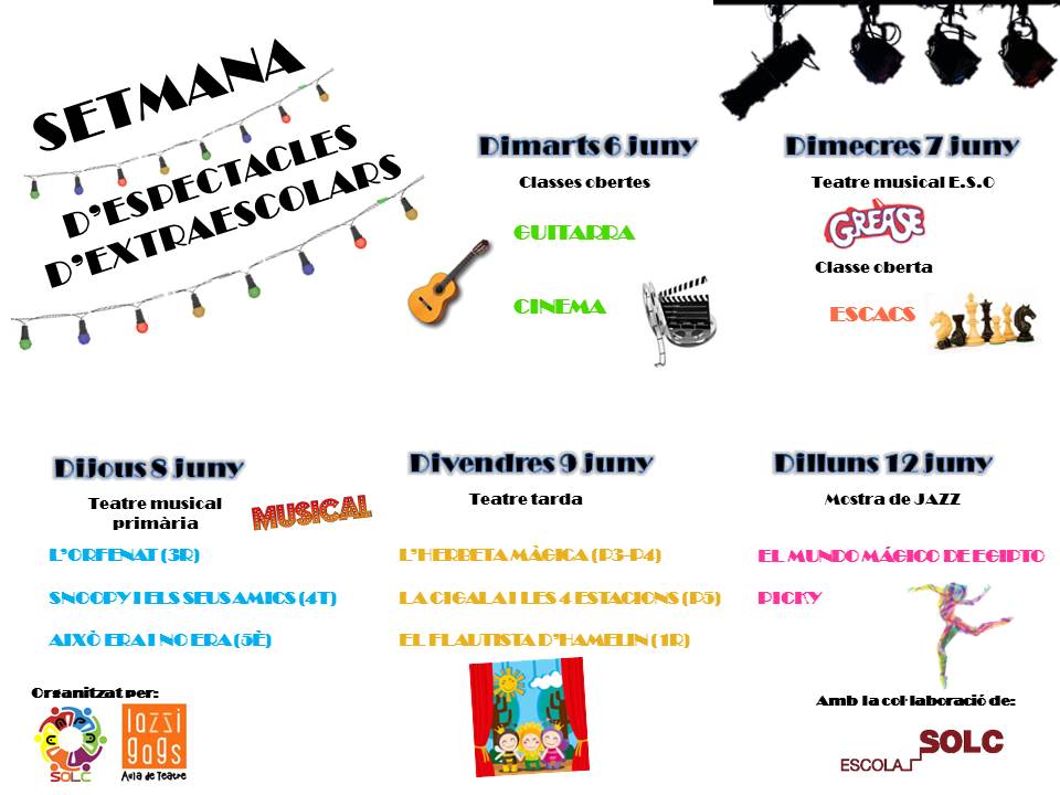 La setmana vinent, es realitzarà la mostra d’algunes activitats extraescolars dirigida a tots els alumnes de l’escola. Us passem un breu calendari, per a què hi estigueu al corrent. Esperem que gaudiu molt de totes elles!