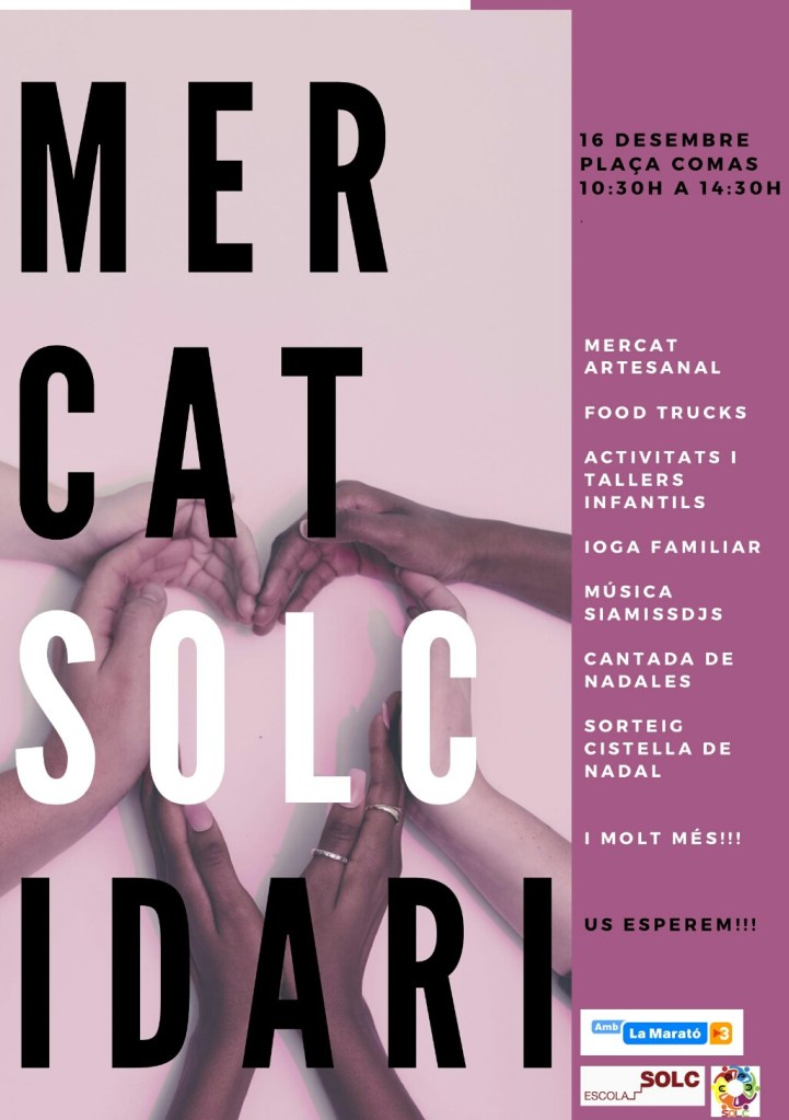 Informar-vos que ja estem preparant la 3ª edició del mercat SOLCidari. Tornem a repetir ubicació, Plaça Comas (seu del districte de Les Corts) i la data serà diumenge 16 de Desembre de 2018. Aquest any intentarem superar la recaptació de l’any passat i poder aportar el nostre granet de sorra per la lluita contra el càncer. Tots amb La Marató!