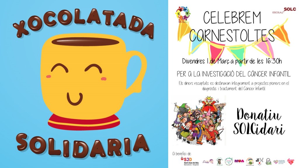 Un cop hagin desfilat tots els alumnes, mestres, personal de l’escola i pares, recordeu que l’Ampa oferirà xocolata desfeta a tothom qui en vulgui. Aquest any, volem informar-vos que habilitarem unes guardioles per a sumar-nos a les diferents xocolatades solidaries que s’estan organitzant per recaptar diners per a la investigació del càncer infantil.