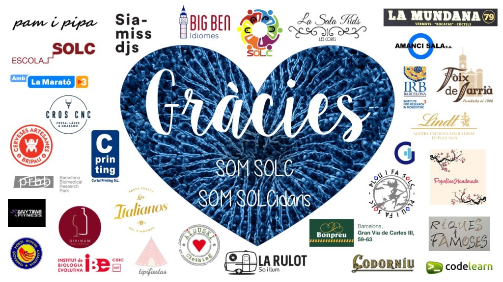Des de les 10:00h del matí hi haurà tota classe de parades, d’alumnes, famílies, externes a l’escola amb producte que no us podreu resistir…. També hi tindrem les actuacions de guitarra i combo, ioga inclusiu, zumba, les SiamissDj pels més marxosos, i mooolts tallers per a totes les edats!!! No us ho podeu perdre!!!!! I com sempre al final de la jornada farem el sorteig de la GRAN cistella SOLCidària!!!! Els números estaran a la venta a partir de la setmana vinent, també a l’escola!!!!!