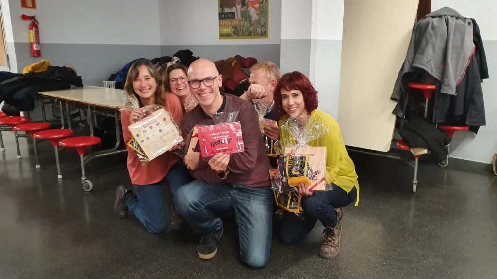 Quan vam acabar vam fer un brindis pels 40 anys de l’escola i vam sortir altra cop a la sal d’usos múltiples a cantar al karaoke i a ballar una mica.