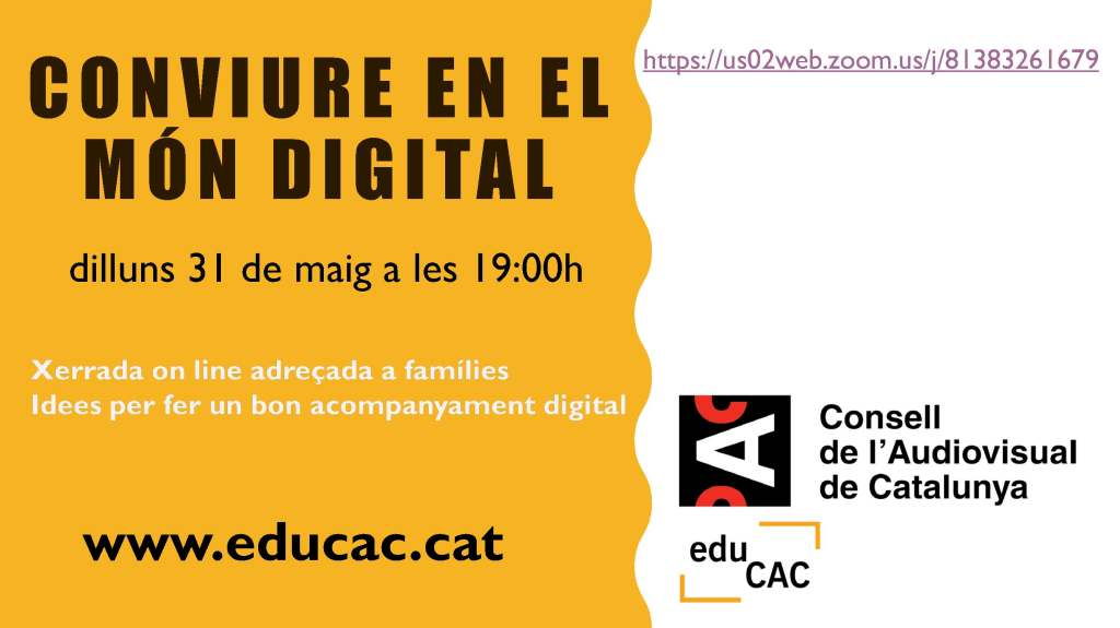 “CONVIURE EN EL MÓN DIGITAL: Idees per fer un bon acompanyament digital” impartit per eduCAC (Consell de l’Audiovisual de Catalunya).
