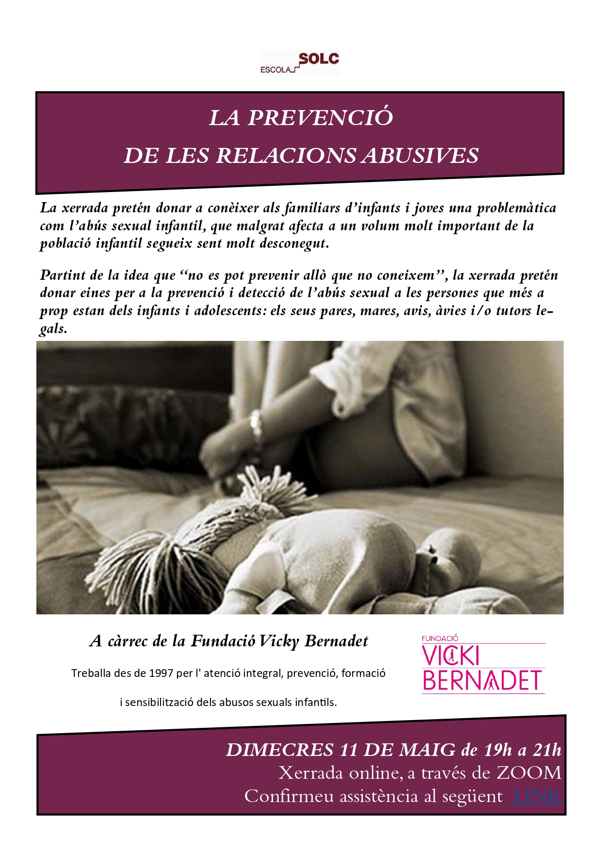 Us convidem a la xerrada online sobre La prevenció de les relacions abusives el dimecres 11/05 a les 19h. Confirmar assistència: