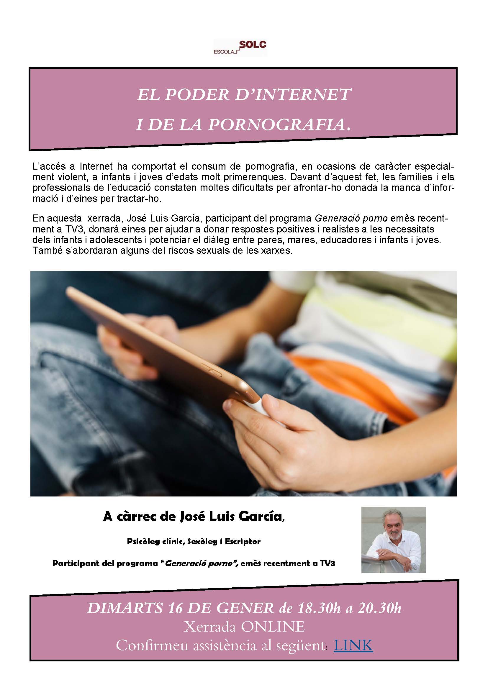 Propera xerrada sobre “El poder d’internet i de la pornografia”, dimarts 16 de gener, de 18.30h a 20.30h a càrrec de Jose Luis García.