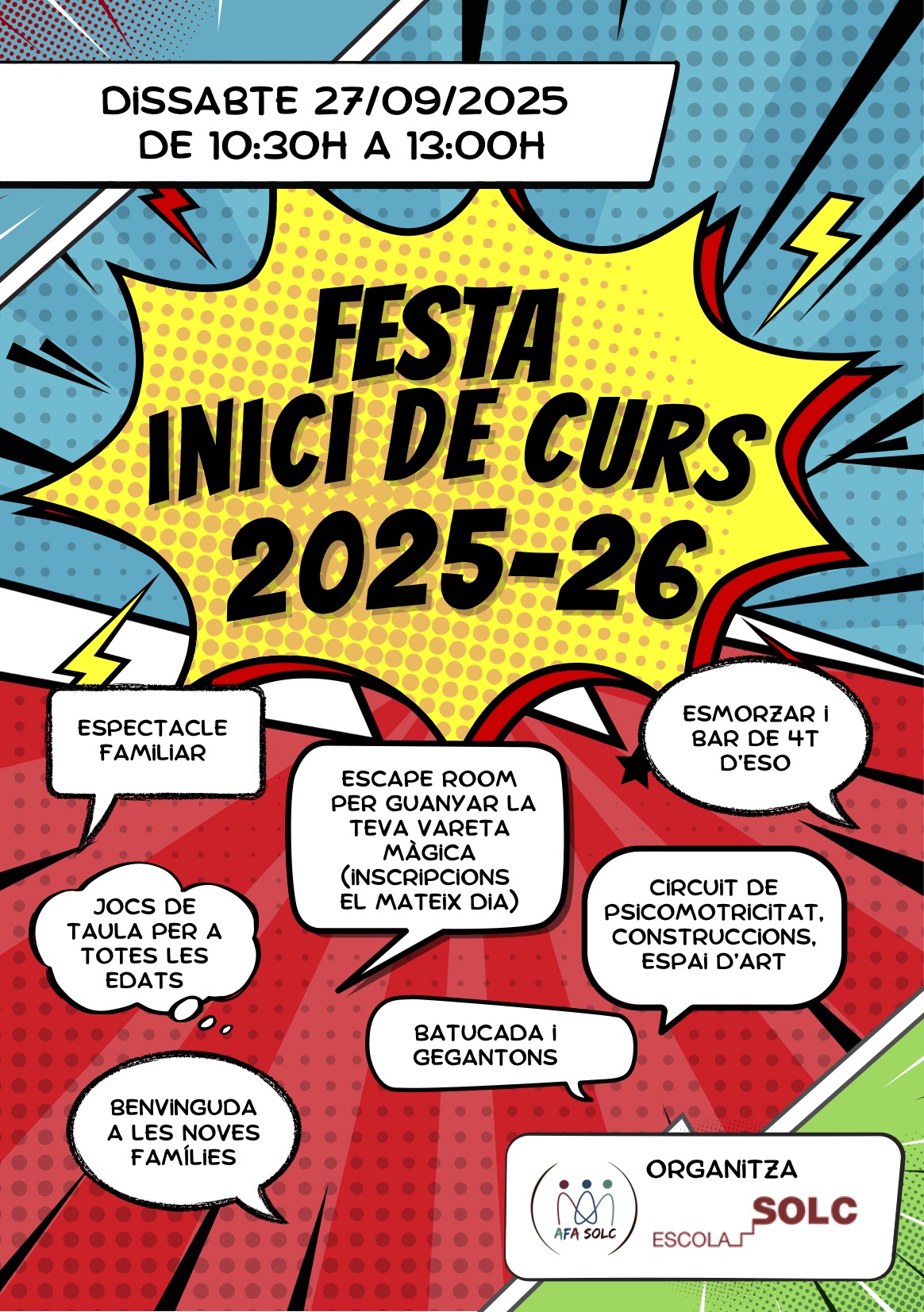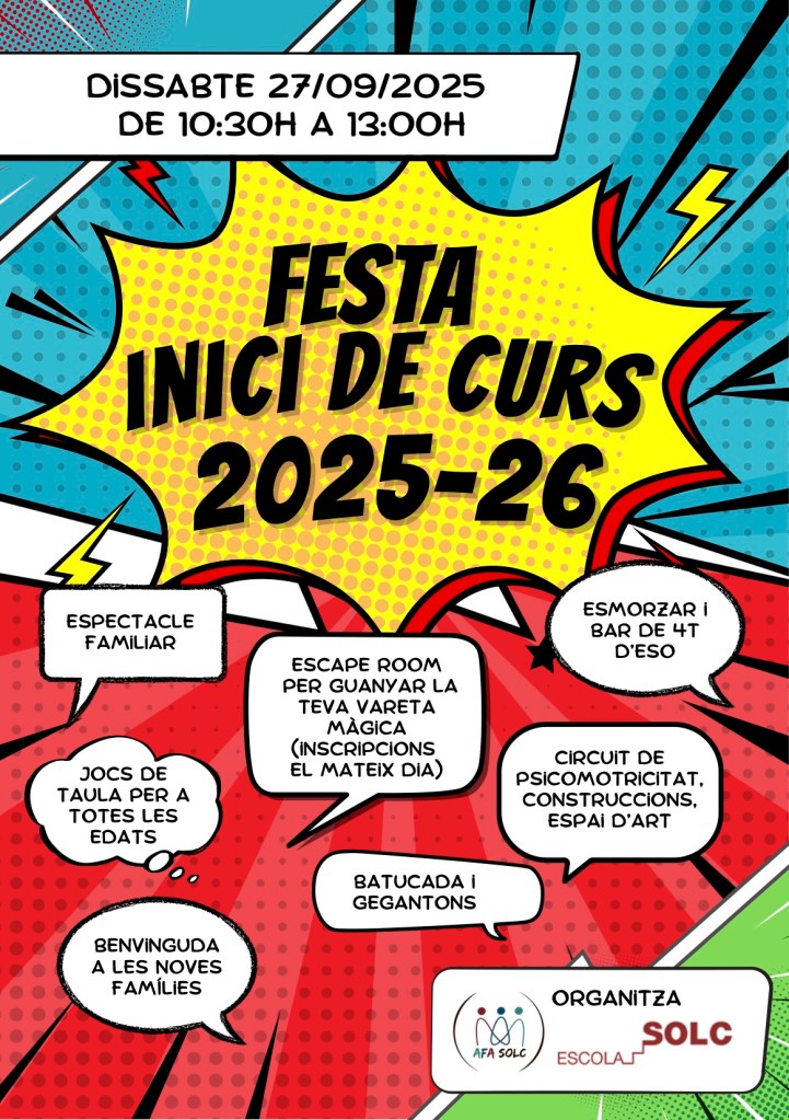 El primer cap de setmana de curs escolar s’organitza una festa d’e benvinguda a l’Escola per als nous infants i famílies d’inici de curs on tothom de l’Escola hi és més que convidat.